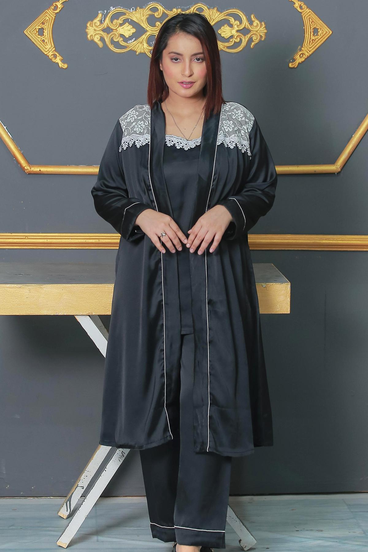 *For Express Delivery Order before 7 pmExperience the epitome of elegance and comfort with Quirky Wear’s 3-Piece Gown Set. Perfect for lounging in style or enjoying a restful night, this set includes a luxurious gown, a comfortable camisole, and a chic trouser, making it a versatile addition to your sleepwear collection.