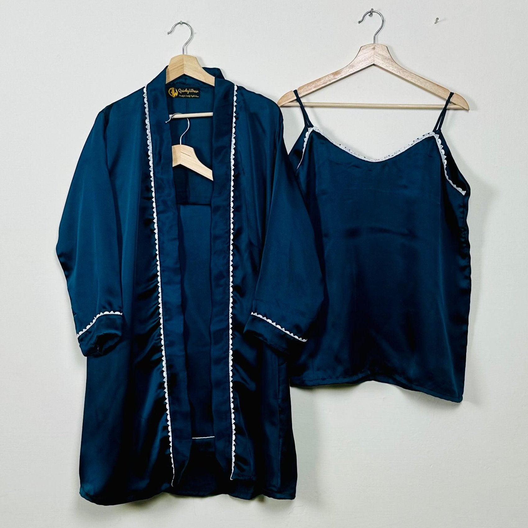 Upgrade your loungewear with the Quirky Wear 3-Piece Gown Set. Enjoy the perfect blend of luxury, comfort, and timeless style, ensuring you look and feel your best whether you're at home or sleeping.