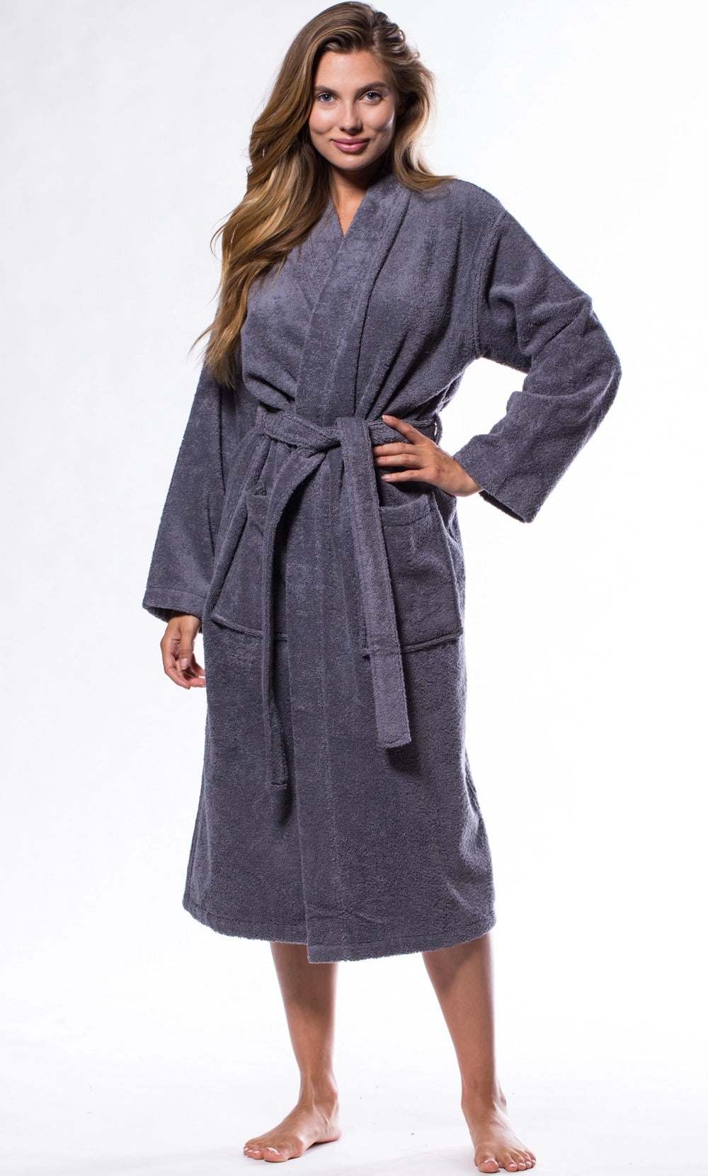 Elegant Charcoal Grey Cotton Terry Bathrobe