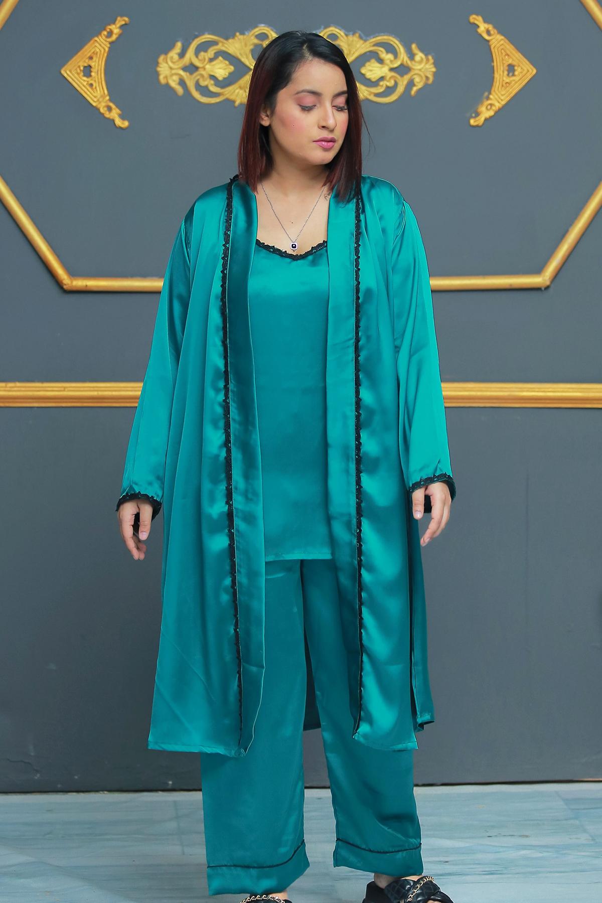 *For Express Delivery Order before 7 pmExperience the epitome of elegance and comfort with Quirky Wear’s 3-Piece Gown Set. Perfect for lounging in style or enjoying a restful night, this set includes a luxurious gown, a comfortable camisole, and a chic trouser, making it a versatile addition to your sleepwear collection.