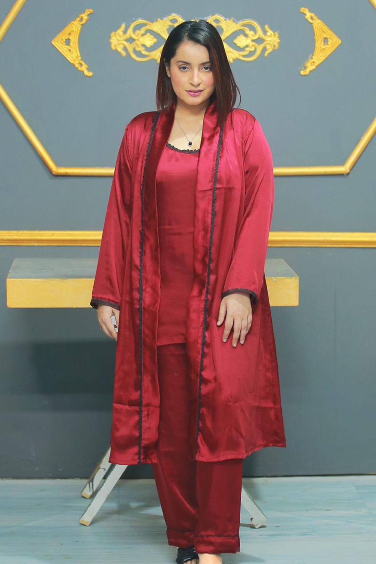 *For Express Delivery Order before 7 pmExperience the epitome of elegance and comfort with Quirky Wear’s 3-Piece Gown Set. Perfect for lounging in style or enjoying a restful night, this set includes a luxurious gown, a comfortable camisole, and a chic trouser, making it a versatile addition to your sleepwear collection.
