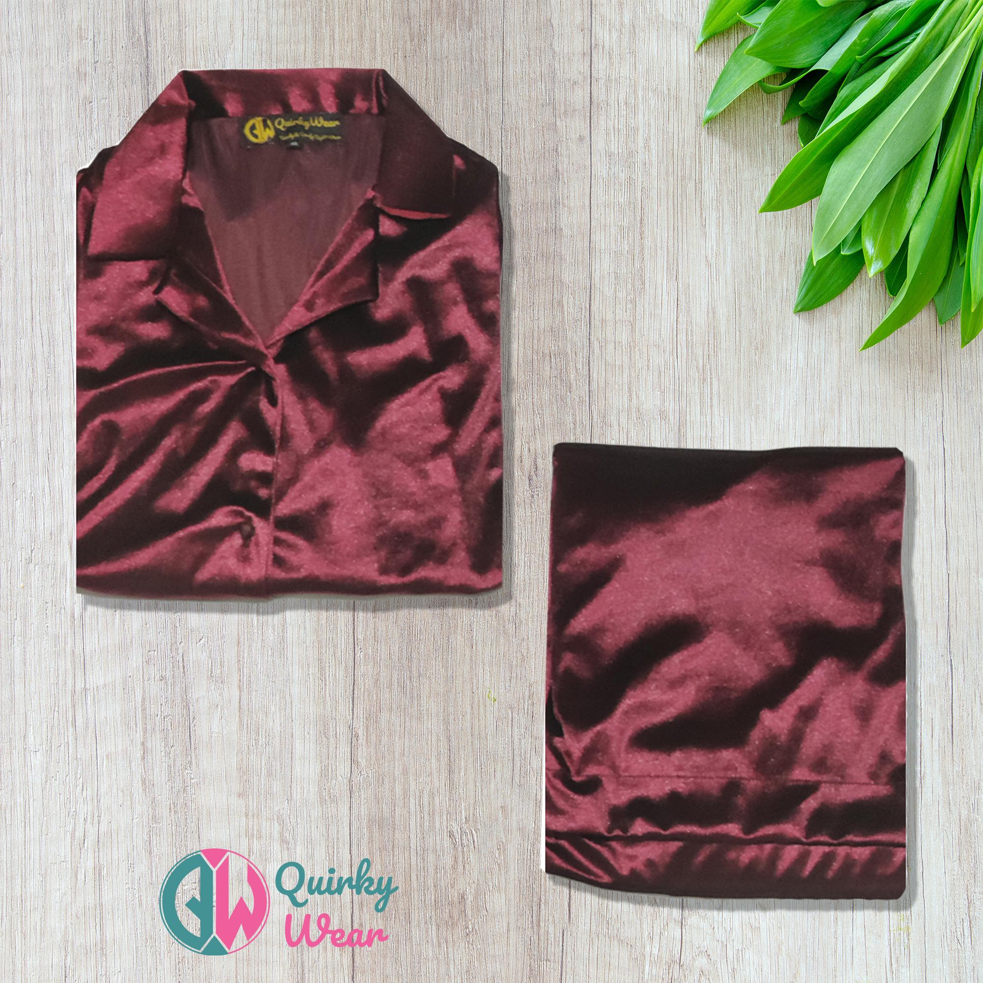 *For Express Delivery Order before 7 pmIndulge in ultimate comfort and style with our Luxurious Velvet Pajama Set. This elegant set is crafted from plush velvet, offering a soft, cozy feel against your skin, perfect for those chilly nights or lounging in style. The pajama top features a classic button-down design with a relaxed fit, complemented by matching bottoms with an elastic waistband for the perfect fit. Available in rich, deep hues, this set adds a touch of luxury to your nighttime routine, ensuring you look as good as you feel.