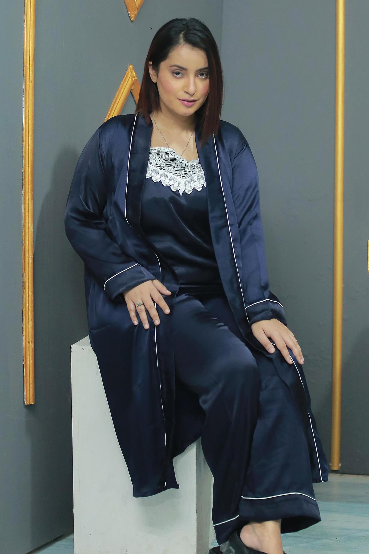 *For Express Delivery Order before 7 pmExperience the epitome of elegance and comfort with Quirky Wear’s 3-Piece Gown Set. Perfect for lounging in style or enjoying a restful night, this set includes a luxurious gown, a comfortable camisole, and a chic trouser, making it a versatile addition to your sleepwear collection.