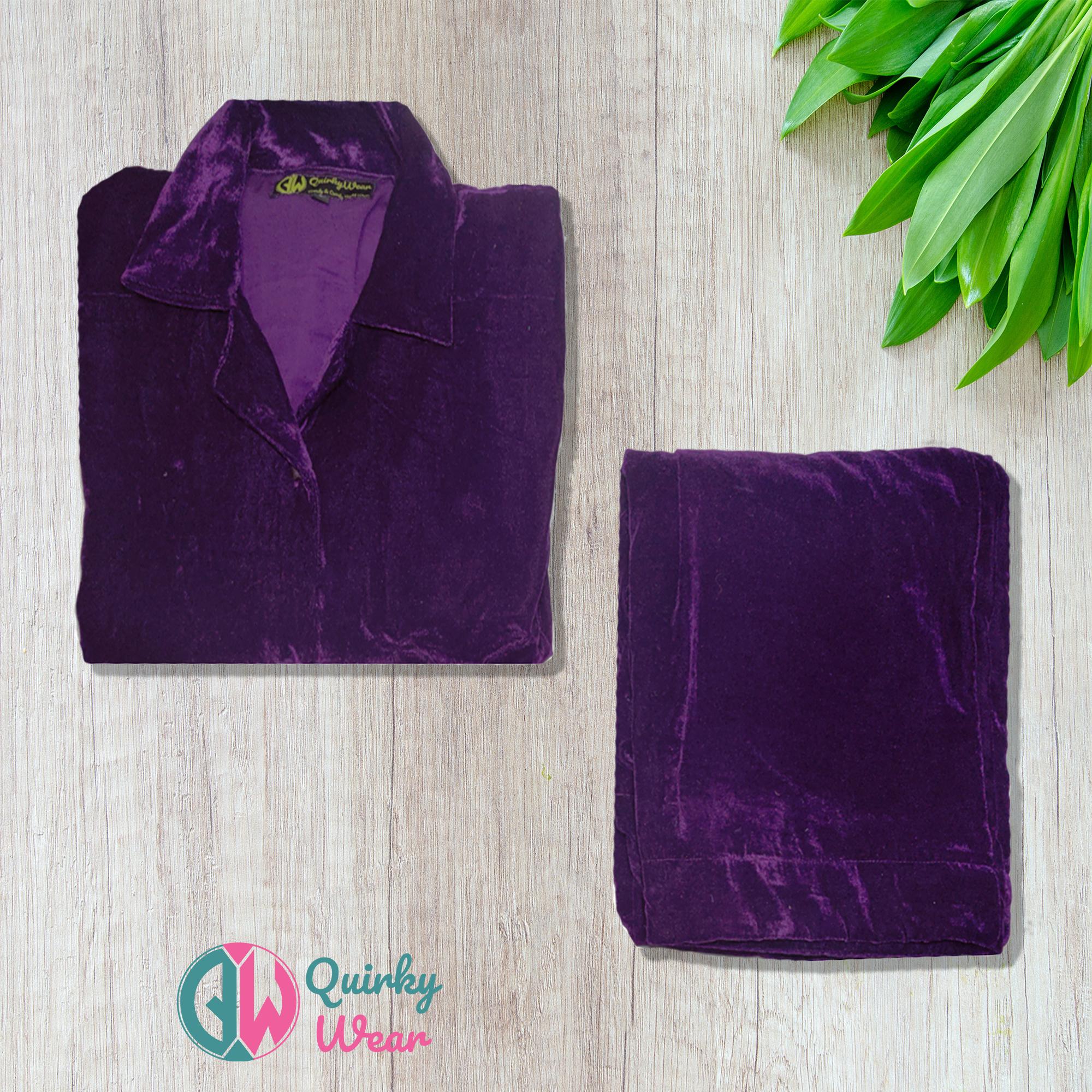 *For Express Delivery Order before 7 pmIndulge in ultimate comfort and style with our Luxurious Velvet Pajama Set. This elegant set is crafted from plush velvet, offering a soft, cozy feel against your skin, perfect for those chilly nights or lounging in style. The pajama top features a classic button-down design with a relaxed fit, complemented by matching bottoms with an elastic waistband for the perfect fit. Available in rich, deep hues, this set adds a touch of luxury to your nighttime routine, ensuring you look as good as you feel.